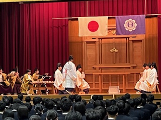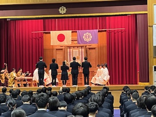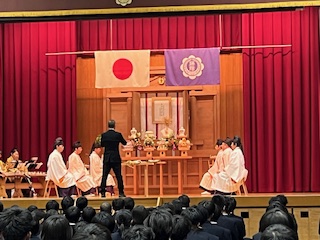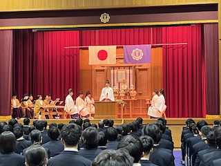 令和7年度の「感謝祭」を厳粛に挙行しました。祭主に余土教会の秦浩治先生をお迎えしました。「感謝祭」の目的は、人や物など我々を取り巻くあらゆる物に感謝するということです。この世に生を受け、今日まで育まれてきたことへの感謝の機会として、生徒一人一人の健康と身の安全、学業・部活動の成就、さらには世界の平和を祈念しました。式典後、神のご加護があります様にと、お直会(のうらい)が配られました。ご来賓の皆様方におかれましては、ご多忙中にもかかわらず本校の感謝祭へご列席を賜り、誠にありがとうございました。