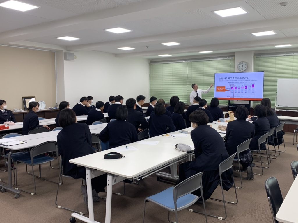 3年生の政治経済の授業を活用し、租税教室を開催しました。生野税務署様より税に関する知識や活用について詳しく説明していただきました。ありがとうございました。