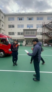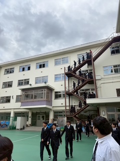 令和7年度の避難訓練を実施しました。今年度は6限のホームルーム中に地震が発生したという設定で行われました。全校生徒が手際よく耐震工事済の第1体育館に集合しました。生野消防署様より「日頃から緊急事態時の対応を意識して生活しておくことが大切です」とご講評をいただきました。備えあれば憂いなしです!生野消防署の皆様、本日は誠にありがとうございました。