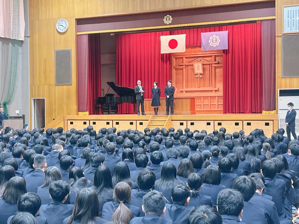 本日より新入生も加わり3学年そろって令和8年度の教育活動が始動しました。学校長の式辞後、今年度より着任された先生方の紹介がありました。式典後には新クラスの写真撮影を行いました。今年度は本校創立百周年を迎えます。HPやInstagramを通じて教育活動を広く発信していきますので、皆様よろしくお願いいたします。