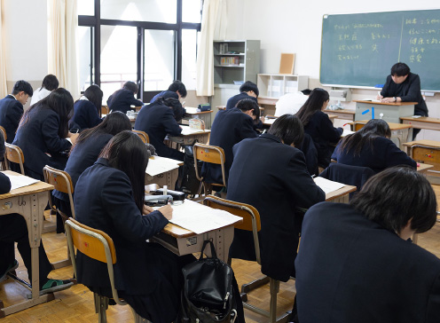 終礼前の25分を使い、新聞記事を書き写すなどの取り組みを行う「学びたいむ」。机に向かって集中するという習慣は、制作活動に良い影響を与え、大学進学を目指す受験勉強にも役立っています。